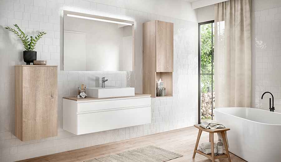 Mit sorgfältig gewählten Möbeln, einer beruhigenden Farbgestaltung, einem stilvollen Spiegel und der passenden Beleuchtung wird das Badezimmer zu einem individuellen Wohlfühlraum. Lassen Sie sich von unseren Ideen inspirieren und entdecken Sie innovative Designs und funktionale Lösungen für Ihr persönliches Traumbad.